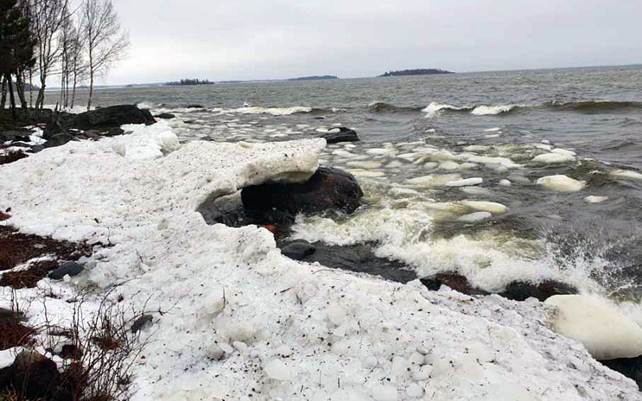 GOTT SAMARBETE. Tack vare goda grannar i stugområdet kan vi ganska snabbt få tillgång till bilder och texter vad som händer ute i området. Under söndag var Daniel Forsman på alerten och skickade in bilder från en blåsig söndag. – Här en liten film som visar vattenståndet och isläget (eller rättare sagt det bristande isläget) …
