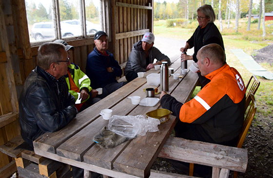 Efter arbetsinsatsen hade Bengt ordnat med kaffe och smörgås som självklart smakade bra.
