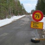 BLÖTA VÄGAR. Ett säkert vårtecken är när den gula skylten med max vikt 7 ton kommer fram. Denna kommer du att se när du svänger av från Rovågernsvägen ned mot Laxögern.