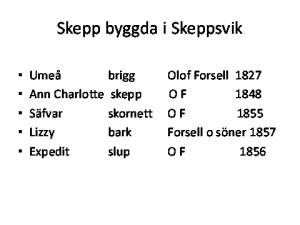 ”…Skeppet Orion under Kapten Hansen ankom till Skeppsvik.