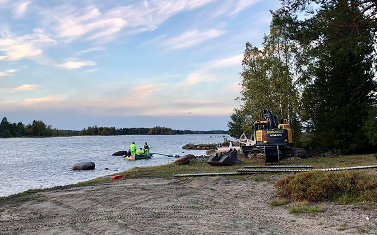 Bilden som tillhör denna nyhet visar att arbetet med att få över ”sjökabeln” till Laxögern 46-84 är på gång.