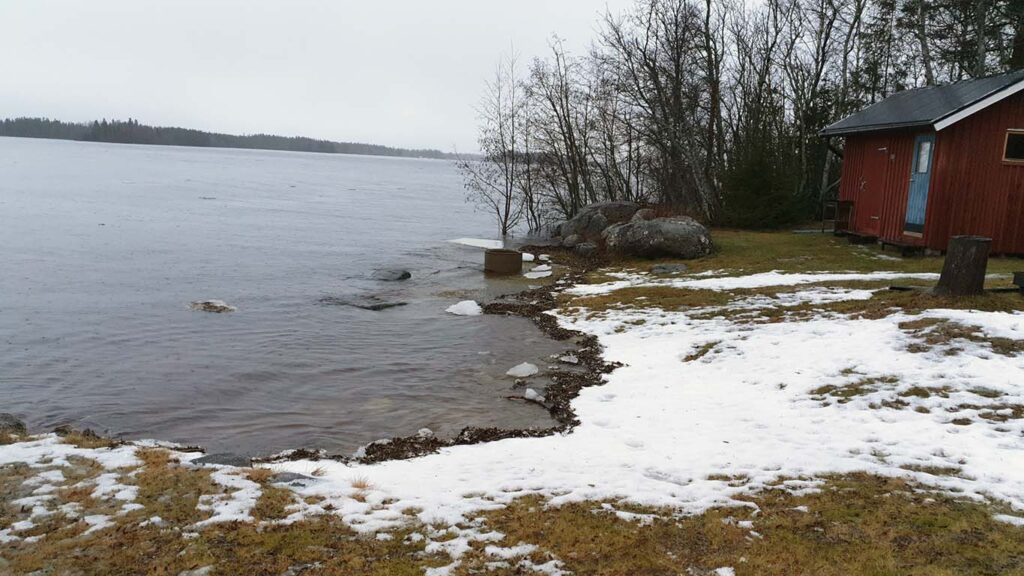 – Några bilder, notera lyktstolpen som sitter på Daniels brygga, som nu är helt under vatten , även vår grillplats är nu i vattnet, berättar Michael Tjernberg.
