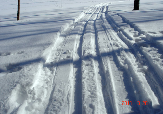 – Om ni ser ett skidspår sätt gärna på er skidorna och ta en tur så blir spåret bättre och bättre. Åker ni skoter efter det blir det förstört.