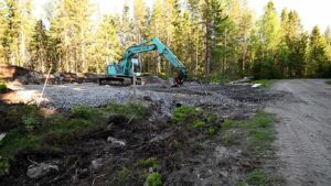 – Parkeringen för cirka 8 bilar skulle kunnat vara klar från min sida men problemet är att jag inte får ut de sista lassen med grus. Alla som håller på med sådana transporter har mycket att göra men min förhoppning är att min insats blir klar i början eller i mitten av nästa vecka.